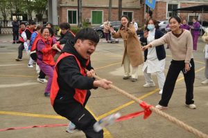 最令人忍俊不禁的当属袋鼠跳接力,白大褂化身彩色布袋,平日里端庄的医生们变身灵动的”袋鼠”,参赛选手蹦跳时眼镜滑到鼻尖仍奋力前冲的模样,引得场边观众笑泪交织。