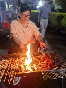 活动当晚,现场灯火通明,欢声笑语此起彼伏。丰富多样的烧烤食材和饮品,为活动的顺利开展提供了坚实的保障。平日里奋战在医疗、护理、行政、后勤等各个岗位的同事们,此刻化身为“烧烤大师”,大家分工协作,默契配合。有的生火添炭,有的刷油撒料,有的翻转食材,忙得不亦乐乎。
